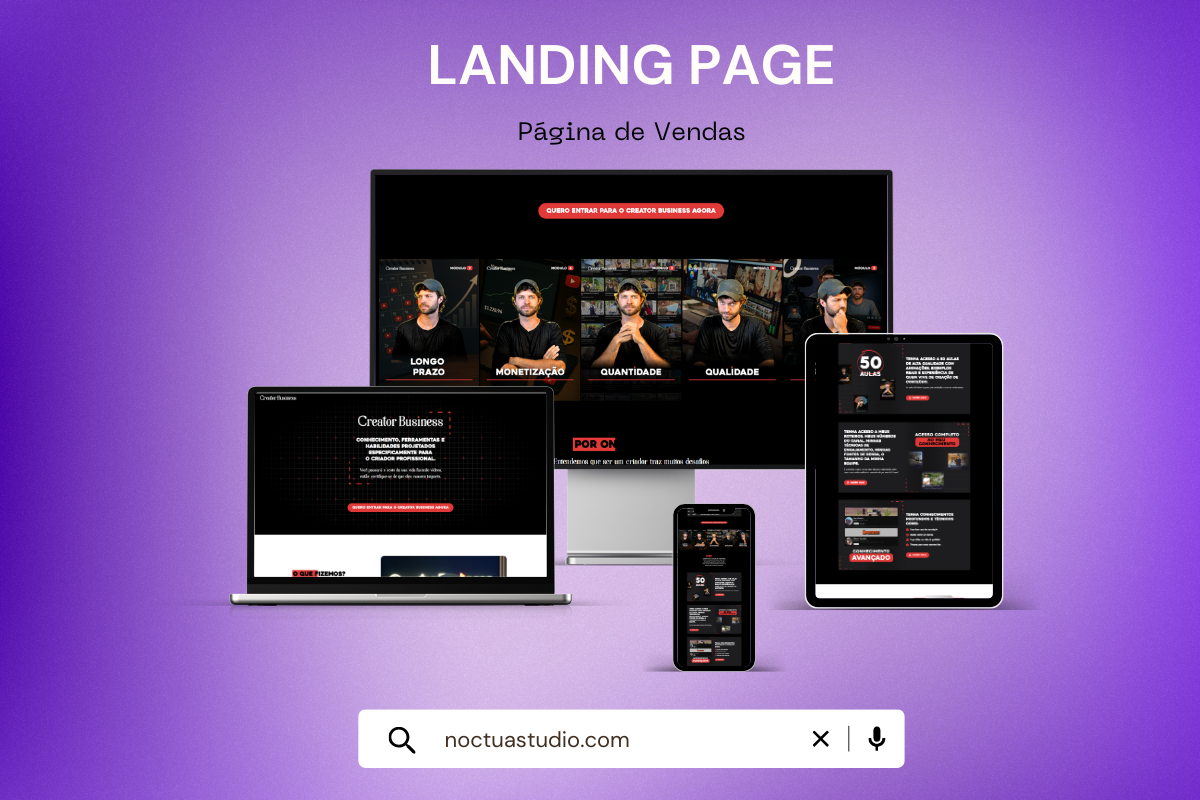 Cuidamos de toda a estrutura de lançamento do seu infoproduto, desde a identidade visual até as páginas de captura, checkout e automações. Transformamos sua ideia em um produto digital pronto para vender, com foco em conversão e estratégia.